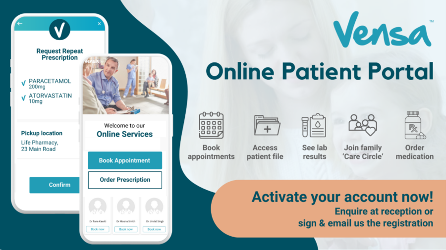 Our goal is to provide you with a seamless and efficient online experience. The Vensa portal will offer enhanced features for booking appointments, requesting repeat prescriptions, and viewing lab results.
